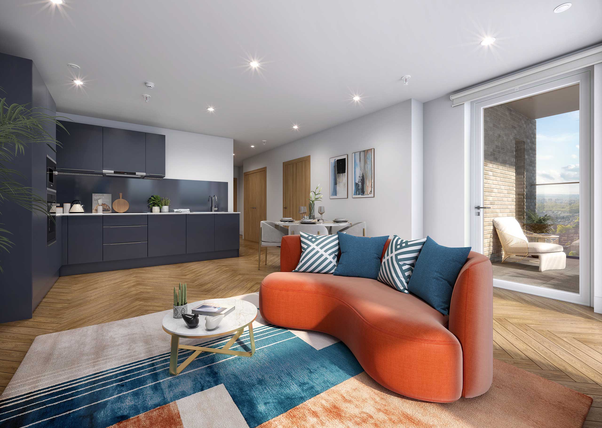 CGI external disclaimer: External and roof top terrace computer generated images for illustration only. Final as built development (including elevations, materials, finishes etc.) may vary. Images showing views are based on the site at the time the image is produced. Please note that landscapes change and a view which is unrestricted now may be restricted in the future.